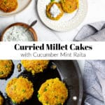 These golden millet cakes are laced with curry powder, scallions, carrots and peas, and are served with a cooling cucumber and mint raita. You can serve them as a side dish or pair them with a simple salad for a vibrant and healthy weeknight meal (see below for how I get my kids to eat them!). The cakes are warm and slightly spicy, the raita is creamy and refreshing, and the result is totally addicting.