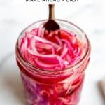 These easy quick pickled red onions are the ultimate secret weapon, instantly elevating dishes ranging from tacos, to burgers, to grain bowls, to salads and much more (see below!). They have the most incredible flavor from a few secret ingredients and they last for weeks in the fridge. Best of all, you're not going to believe how easy they are to make (spoiler alert, they come together in less than 10 minutes of active prep time)!